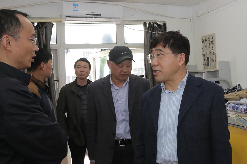 学生宿舍空调安装是今年学校重点推进的实事工程之一,也是师生关注热点。为进一步推进工作落实,4月14日,校长徐明稚、副校长陈招应率基建后勤处、后勤集团等相关部处负责人现场指导、检查空调安装进展情况。