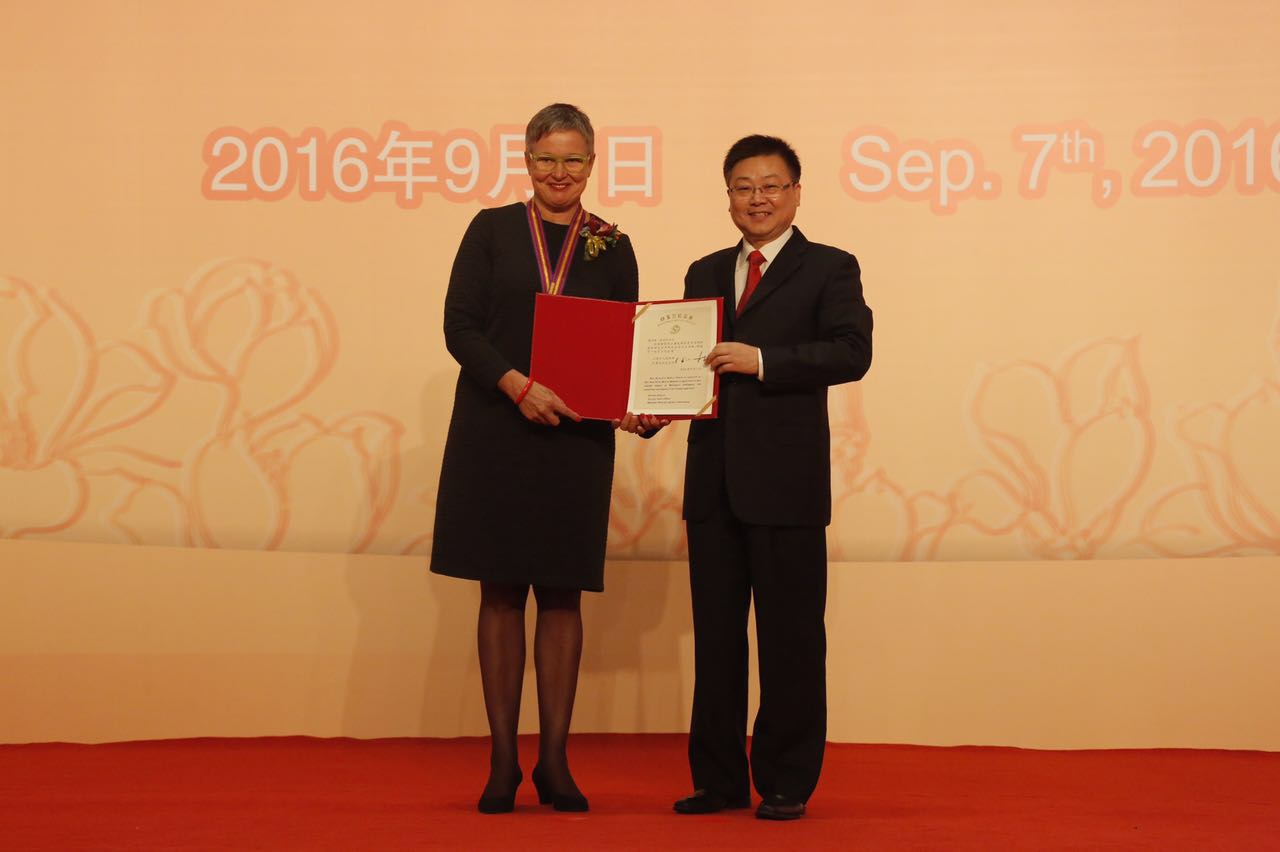 教师节临近,老师们纷纷受到来自各方的祝福和赞扬,而在校园里,总少不了高鼻梁、蓝眼睛和各种肤色的“洋老师”的身影,他们漂洋过海来到东华,并和中国教师一样在校园里为学生传道、授业、解惑。9月7日,上海市“白玉兰纪念奖”授奖仪式举行,上海国际时尚创意学院(以下简称SCF学院)芬兰籍学术副院长海伦娜教授荣获2016年“白玉兰纪念奖”,以表彰她对时尚创意教育和上海时尚产业发展所做出的突出贡献。副校长刘春红出席颁奖典礼,国际合作处、SCF学院有关负责人一同参加活动。