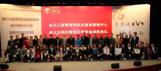 据悉,成立于1996年12月31日的旭日工商管理学院爱心助老志愿团于2005年发展壮大为管院志愿者管理中心,如今已拥有爱心助残、辅助办公、互助讲解、互助教学、敬老尊长和社区帮扶6大类42项常规志愿者服务活动。1998年,时任校党委副书记兼副校长吴楚武曾为爱心助老志愿团题词“夕阳中飘扬一面年轻的旗帜”。二十年来,该学生组织获得了100多项校级以上荣誉,包括上海市老龄委颁发的上海市第一批(共5家)“爱心助老特色基地”称号、“上海市教育系统精神文明建设好事”、“上海市十佳爱心助老特色基地”提名奖、友邦项目全国十强、长宁区优秀青年志愿者项目等。