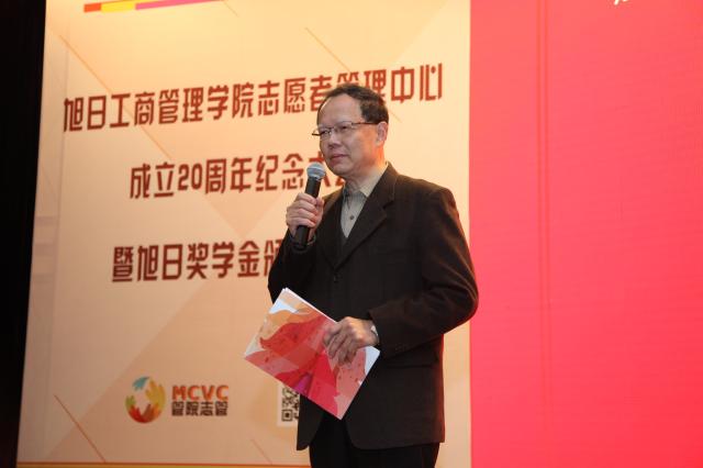 吴楚武在致辞中回顾了当年他与爱心助老志愿团结下的深厚情缘。他对学院志愿者管理中心20年来在志愿者管理与人才培养上取得的突出成绩给予高度赞扬,希望管院学子能够继续秉持优良传统,再接再厉,在志愿服务实践中彰显青春风采,促进全面发展。同时,他还对香港旭日集团及杨勋先生捐资助学、回馈社会的善举表示感谢。