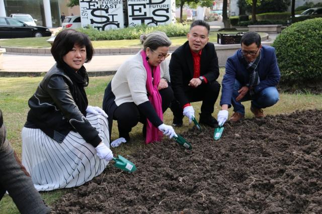12月2日,在我校延安路校区逸夫楼前绿地广场举行了捐赠仪式。荷兰驻沪总领事艾晓安女士( Mrs. Anna Desiree Adema)、刘春红副校长、发展联络处和上海国际时尚创意学院领导共同出席了捐赠仪式,携手种下了象征友谊的郁金香种球。之后,双方领导进行了亲切友好的交谈。刘春红副校长代表学校向艾晓安总领事表达了谢意,并赠送捐赠证书留念。艾晓安总领事深情寄语,希望来年郁金香花开之际,双方的友谊种子能够开出绚烂的花朵。此番驻沪总领事馆捐赠的郁金香为红色和橙色,寓意未来双方深化合作,激发活力,教育事业大展宏图。