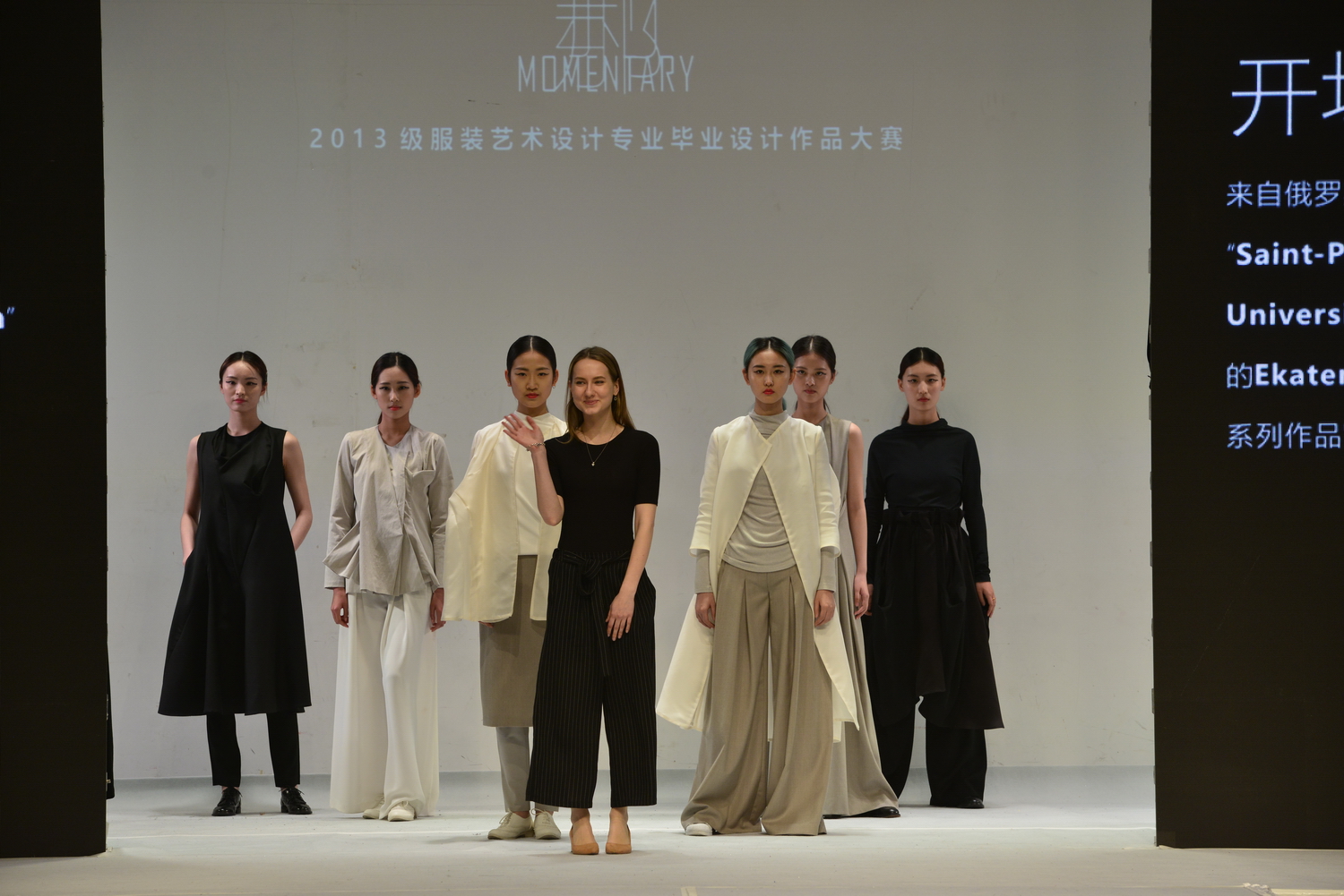 4月11日,服装艺术设计专业13级毕业生优秀作品大赛在延安路校区逸夫楼二楼展演厅举行。上海商学院副教授高毅,拉夏贝尔集团candies品牌总经理席一舟,上海中驰服饰有限公司创意设计总监张璐,时尚跨界艺术家杨玉龙,时尚摄影师KK FONG方亦刚共五位嘉宾担任大赛评委。资产管理处处长唐俊峰,服装与艺术设计学院党总支书记袁孟红,院长李俊,副院长李敏,党总支副书记刘燕萍等莅临现场。
