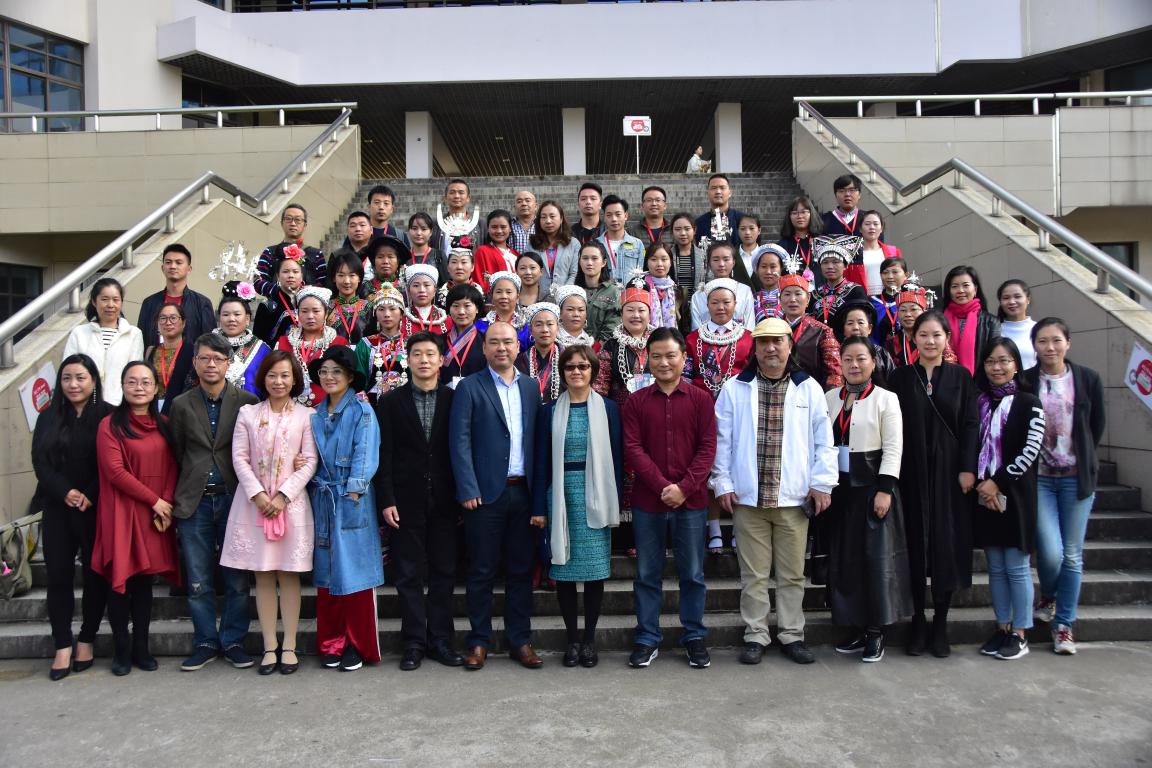 我校第二期中国非物质文化遗产传承人群研修研习计划《传统刺绣创意设计》研修班开学典礼在延安路校区举行。校党委副书记刘淑慧,上海市文化广播影视管理局非遗处副处长葛永铭,贵州省非物质文化遗产保护中心副主任龙佑铭,我校服装与艺术设计学院院长李俊、副院长冯信群及全体非遗研修班学员和教师代表参加活动。