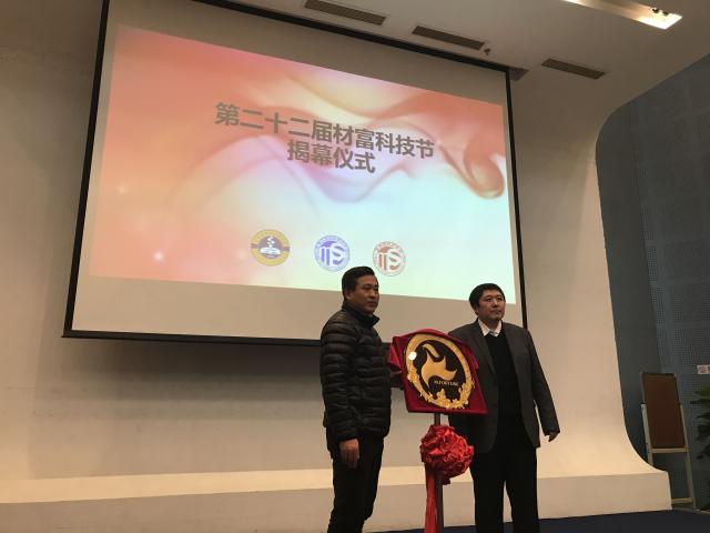 戴蓉宣布第二十二届材富科技节暨第十四届研究生会学术论坛开幕,并与汪济奎教授一同为本次科技节揭幕。会标中,一只火烈鸟在镜月湖前腾空而起,象征材料学院不拘一格、敢于创新,力争在材料研究领域再上新台阶的学术追求。