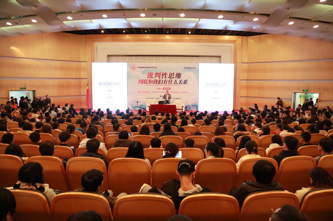 讲座中,李培根院士以批判性思维和马克思主义为切入点,详细地解释了批判性思维与马克思主义的密切关系。他指出,马克思主义是我们的指导思想,而其精髓之一就是批判性思维。随后,李院士讲解了批判性思维与理性、存在间的关系。谈及理性,他说到,批判性思维是建立在理性的基础上,符合理性生活的人自然就有批判性思维。他也引用众多名人大家的观点进一步说明了批判性思维与理性间的重要关系。当转向批判性思维与存在这一话题时,他提及了“超世界存在”这样一个全新的概念。他认为,人与动物的根本区别在于动物不会试图去实现超世界存在,而人则会不断地依靠技术去尝试。而技术的本质是紧闭的存在深处,超世界存在是对现实客观世界中某种存在的超越、批判、否定;虚拟、想象的存在可能孕育出伟大的创新。