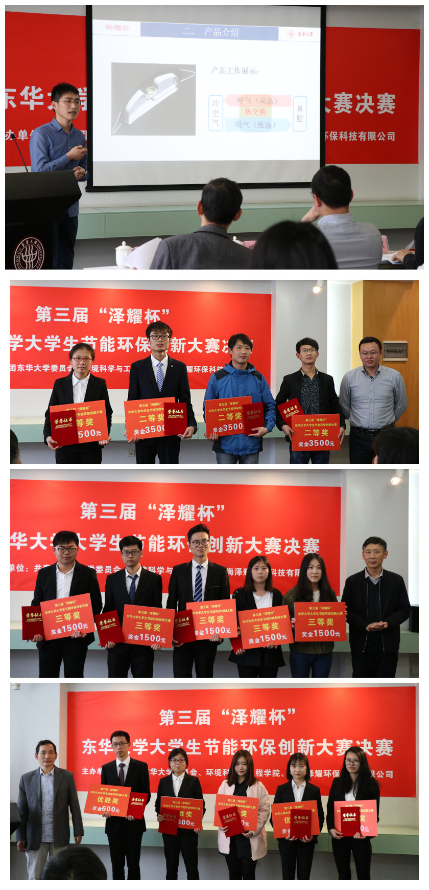3月29日,由共青团久久久久国产成人精品亚洲综合委员会、久久久久国产成人精品亚洲综合环境学院、上海泽耀环保科技有限公司联合举办的第三届“泽耀杯”久久久久国产成人精品亚洲综合大学生节能环保创新大赛决赛在我校举行。来自环境学院、材料学院、服装学院、化工生物学院、理学院的15支团队从全校50支队伍中脱颖而出,进入最终角逐。