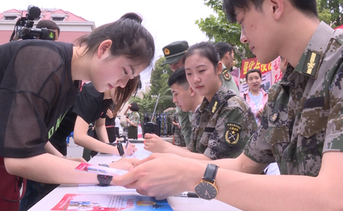 记者看到,前来现场咨询的学生络绎不绝,纷纷在签名墙上留言,“我要去部队”,“走,我们当兵去!”