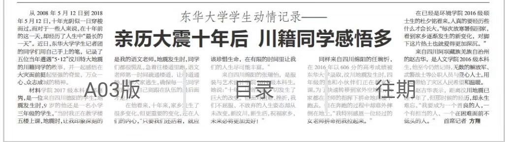 [新民晚报数字报]亲历大震十年后,川籍同学感悟多