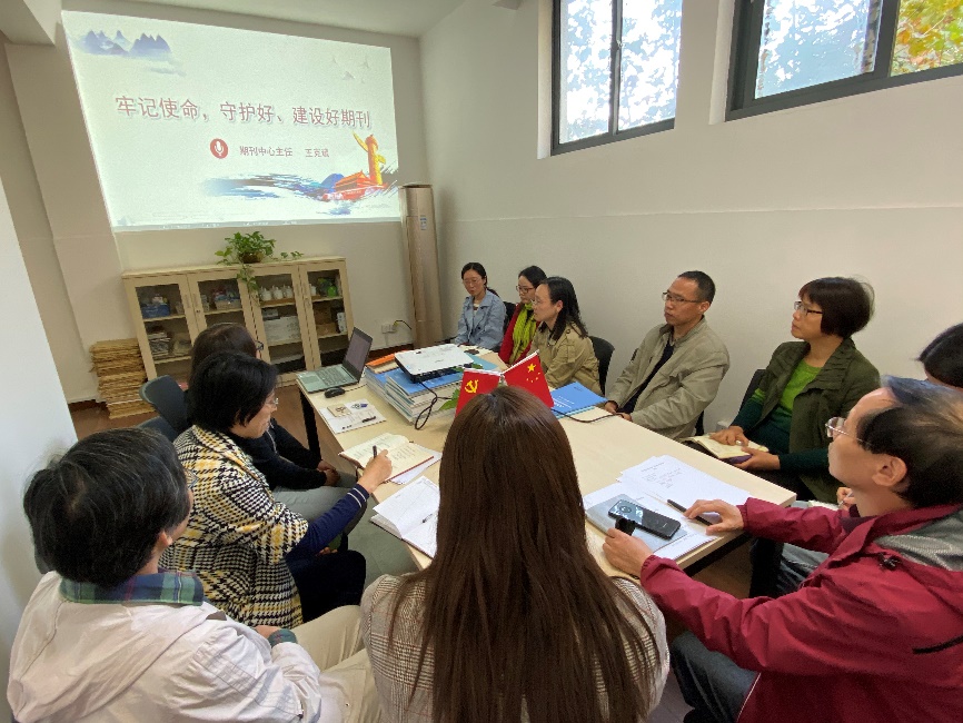 期刊中心主任、党支部书记王克斌为中心全体成员作题为“牢记使命,守护好、建设好期刊”的主题教育专题党课,期刊中心副主任马文娟作题为“推进《久久久久国产成人精品亚洲综合学报(社会科学版)》上水平建设”的主题教育专题党课。期刊是意识形态的重要阵地,建设世界一流科技期刊是国家战略,作为新时代的期刊人,要讲政治、讲大局、讲情怀、讲追求、讲担当、讲创新、讲发展、讲奉献、讲有为,要全面落地落实各项举措,推进期刊建设上水平。