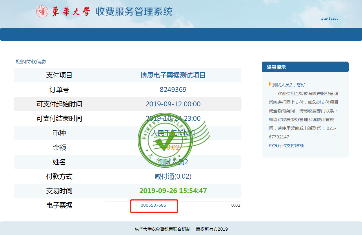 今年10月起,财务处试行财政票据电子化,在校学生(暂不含部分学院学生)8月30日后缴纳的学费、住宿费、代收一卡通充值费(仅限新生)不再开具纸质票据,如需报销,可将电子票据打印在A4纸上作为报销凭证。