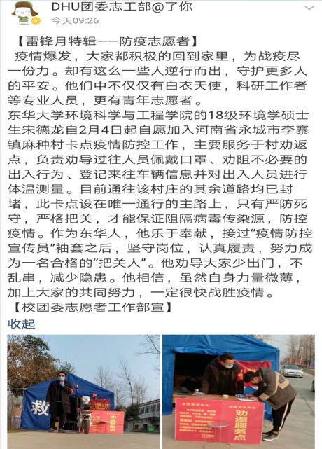 以战“疫”为教材 东华师生共上这堂特殊的社会实践课