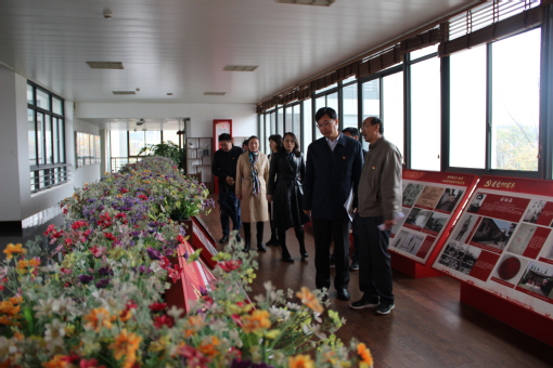 主题党日活动前,刘承功同支部书记陆益军等一起参观了红色长廊“四史”学习教育主题展。