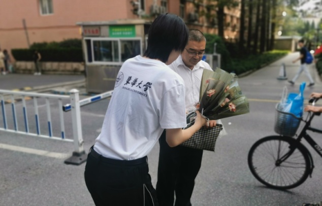 9月10日上午,我校学生会在两校区为教师们送上康乃馨并感谢师恩。自发报名参与为老师送祝福的学生会志愿者说,“也许有些老师没有教过我,但送出花的那一刻很开心,他们始终坚持将爱与精力奉献给教师这一神圣职业,感谢东华老师不辞辛劳地耕耘,祝老师们节日快乐”。