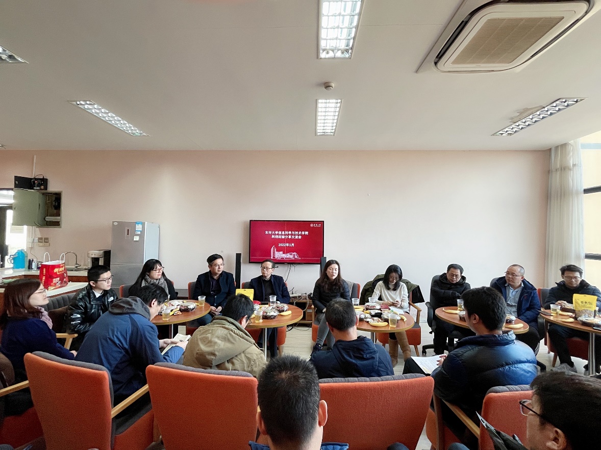 1月11日下午,信息学院在2号学院楼教工小家举办科创经验分享交流会。本次活动邀请到校团委书记沈洁、副书记邵楠为老师们带来科创工作专题交流,同时出席的有信息学院党委书记王直杰、副院长(主持工作)沈波、副院长张义红、张光林、刘华山、院长助理蒋学芹以及学院青年教师代表,会议由信息学院学生工作办公室主任郭姗主持。